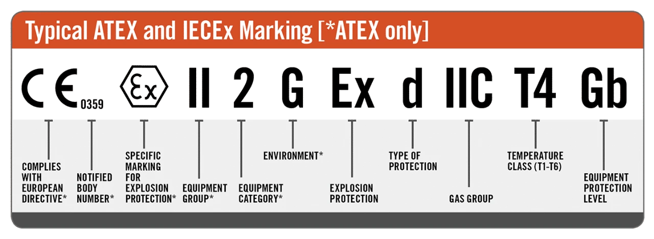 Products that have received ATEX certification will have the official “Ex” badge, indicating they are safe in explosive atmospheres.